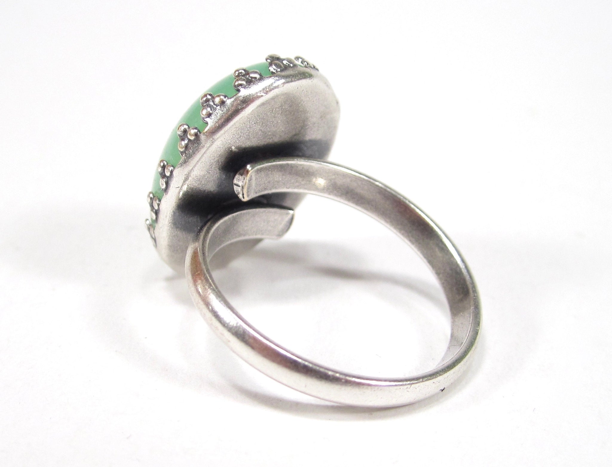Bague en pierre de lune verte en verre fait main vintage argent ancien bohème années 1960 cabochon en verre opale vert fait main à Cologne.