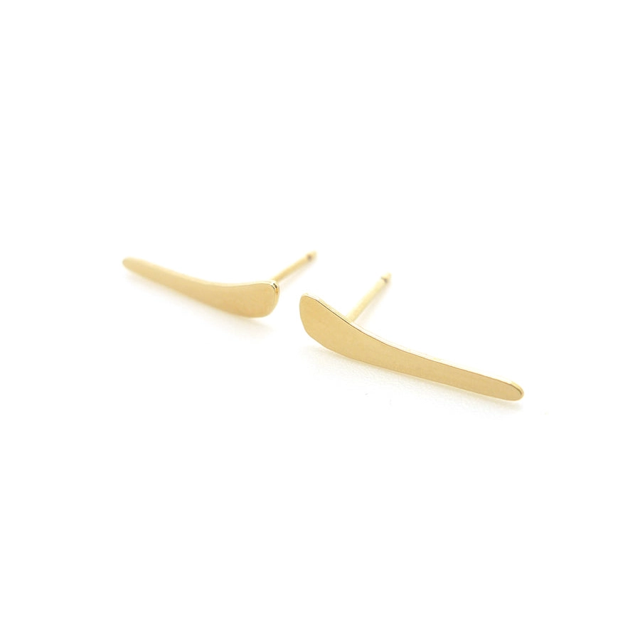 Boucles d'oreilles puces dorées à l'or fin graphiques en forme de brindilles. Intemporelles, minimalistes et sobres, elles sont légères et faciles à porter et peuvent se porter en accumulation.