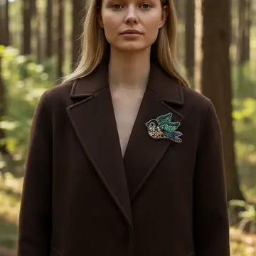 Elevate your look with this stunning, hand-embroidered bird brooch.