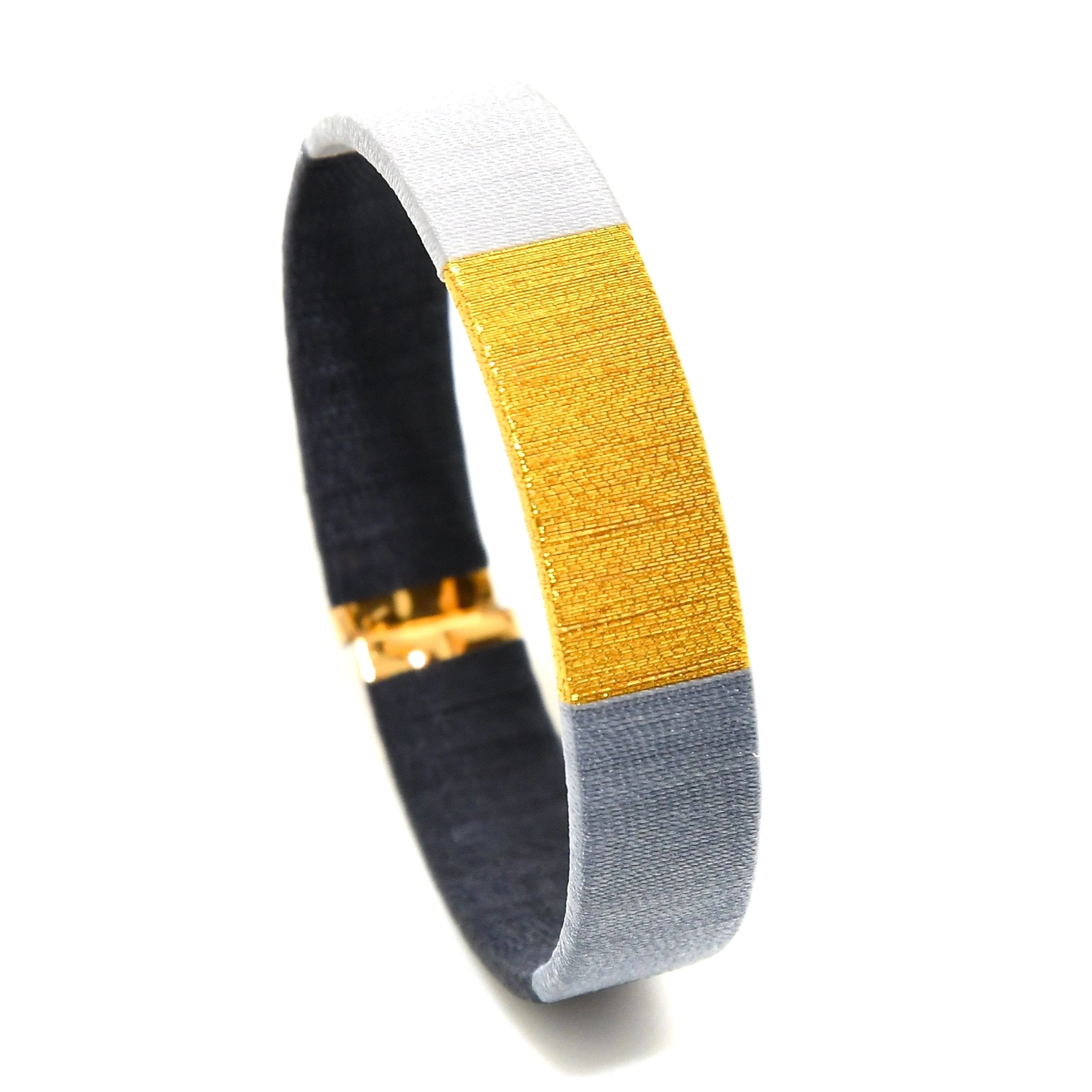 NUANCES DE GRIS : Adoptez le jonc Tao aux nuances de Gris chiné et mixez le avec une jolie Manchette Gris & Noir, ou rehaussez-le avec des couleurs flashy, pour un assortiment très tendance.